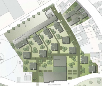Das geplante Wohngebiet inkl. Parkhaus und denkmalgeschütztem Schlachthof-Gebäude