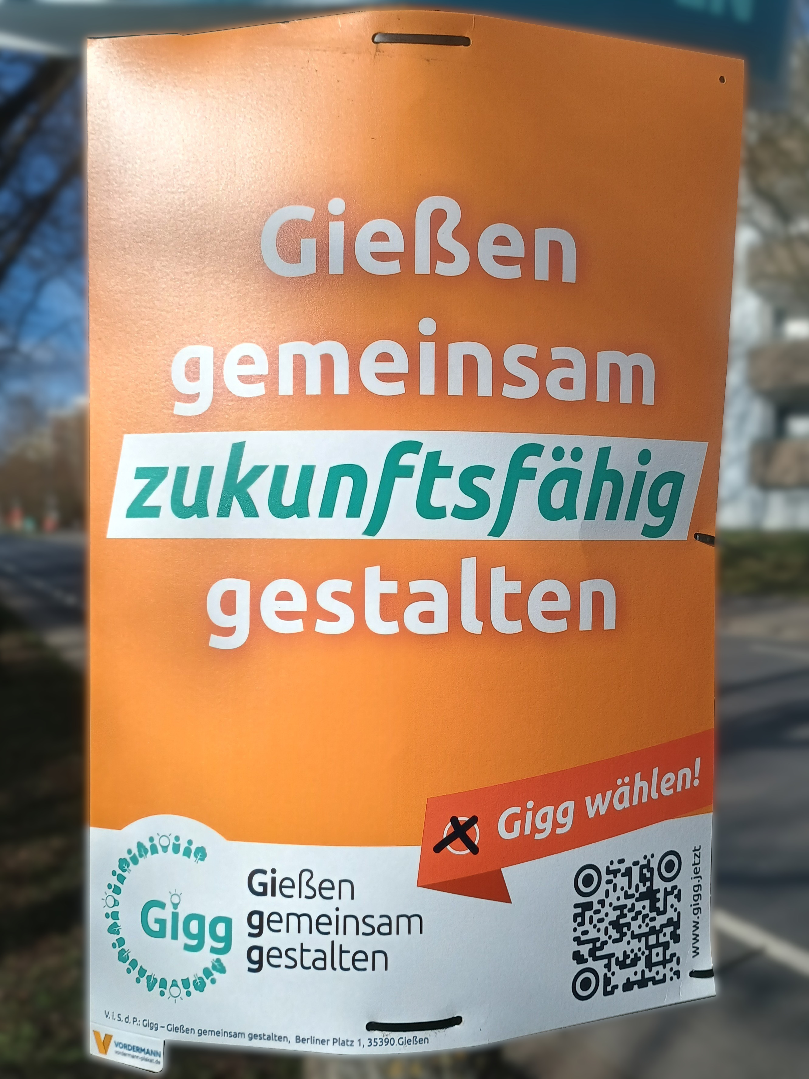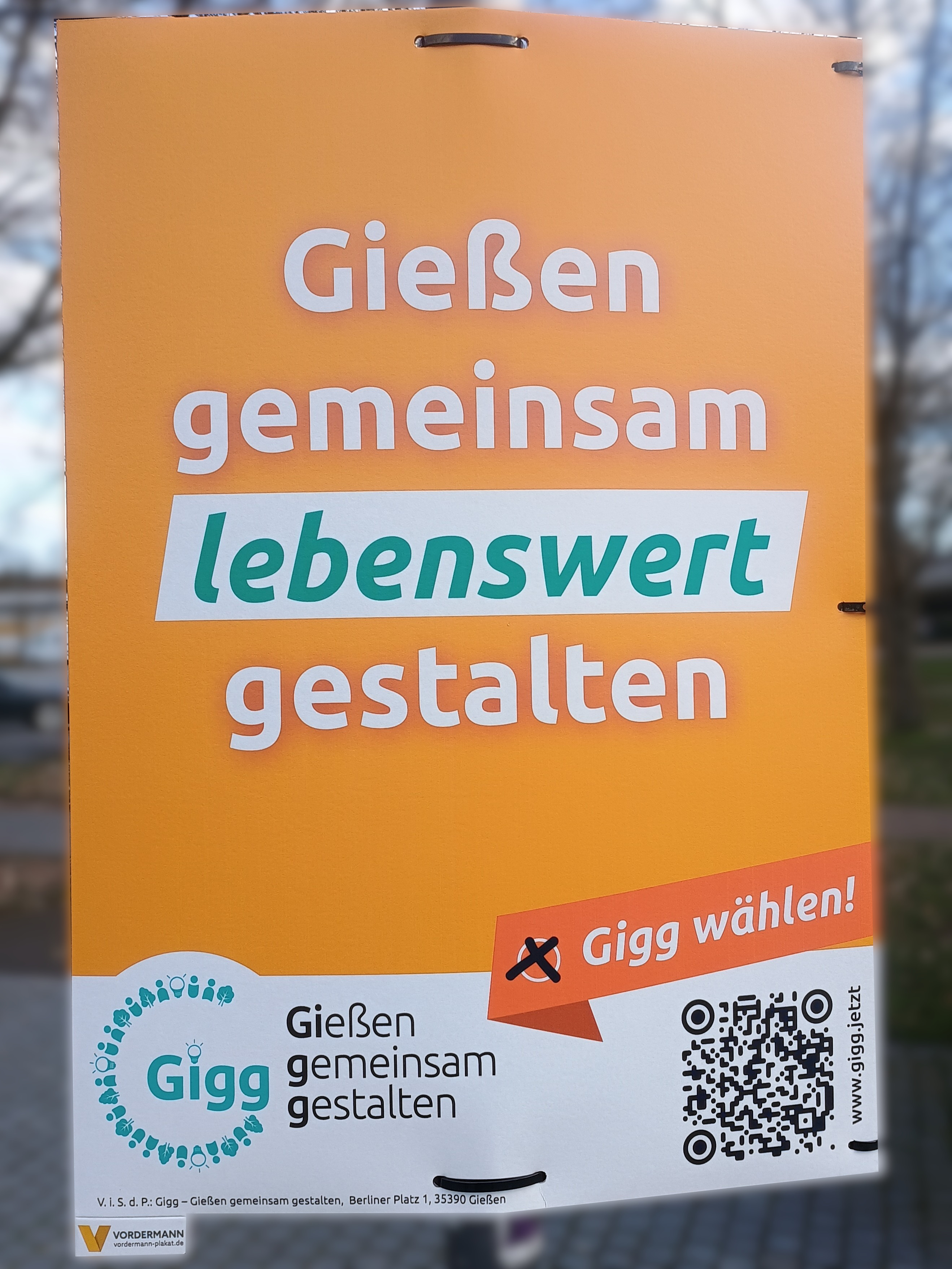 | 03:58, 13. Mär. 2026 | Wahlplakat „Bürgernah statt parteinah!“ (Gigg).jpg (Datei) | 857 KB | COechler | Wahlplakat bei der Kommunalwahl 2026 in Gießen von der Wählervereinigung „Gießen gemeinsam gestalten“ mit dem Slogen „Bürgernah statt parteinah!“. | 1 | |