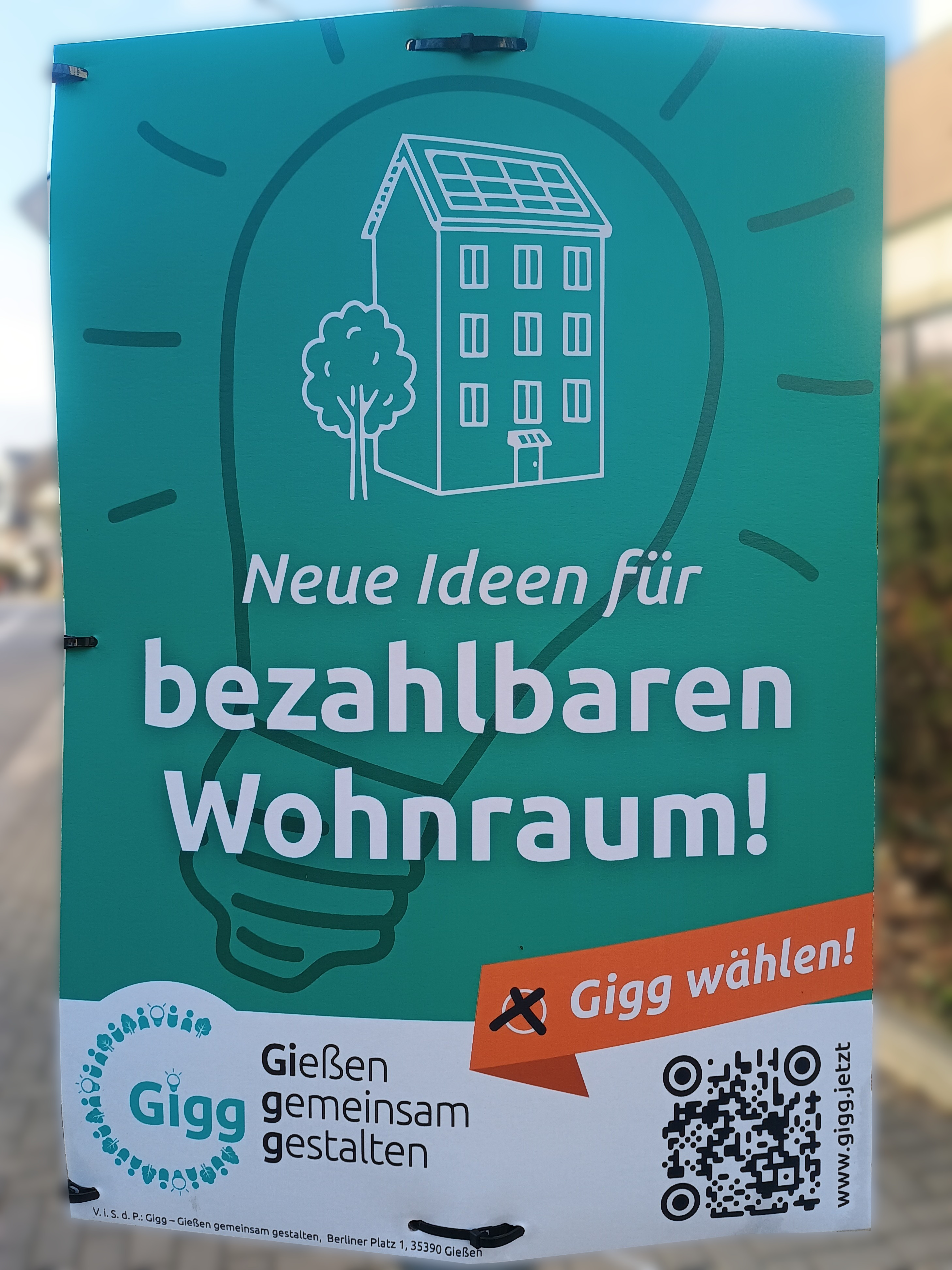 | 04:36, 13. Mär. 2026 | Wahlplakat „Neue Ideen für bezahlbaren Wohnraum!“ (Gigg).jpg (Datei) | 1,57 MB | COechler | Wahlplakat bei der Kommunalwahl 2026 in Gießen von der Wählervereinigung „Gießen gemeinsam gestalten“ mit dem Slogen „Neue Ideen für bezahlbaren Wohnraum!“. | 1 | |