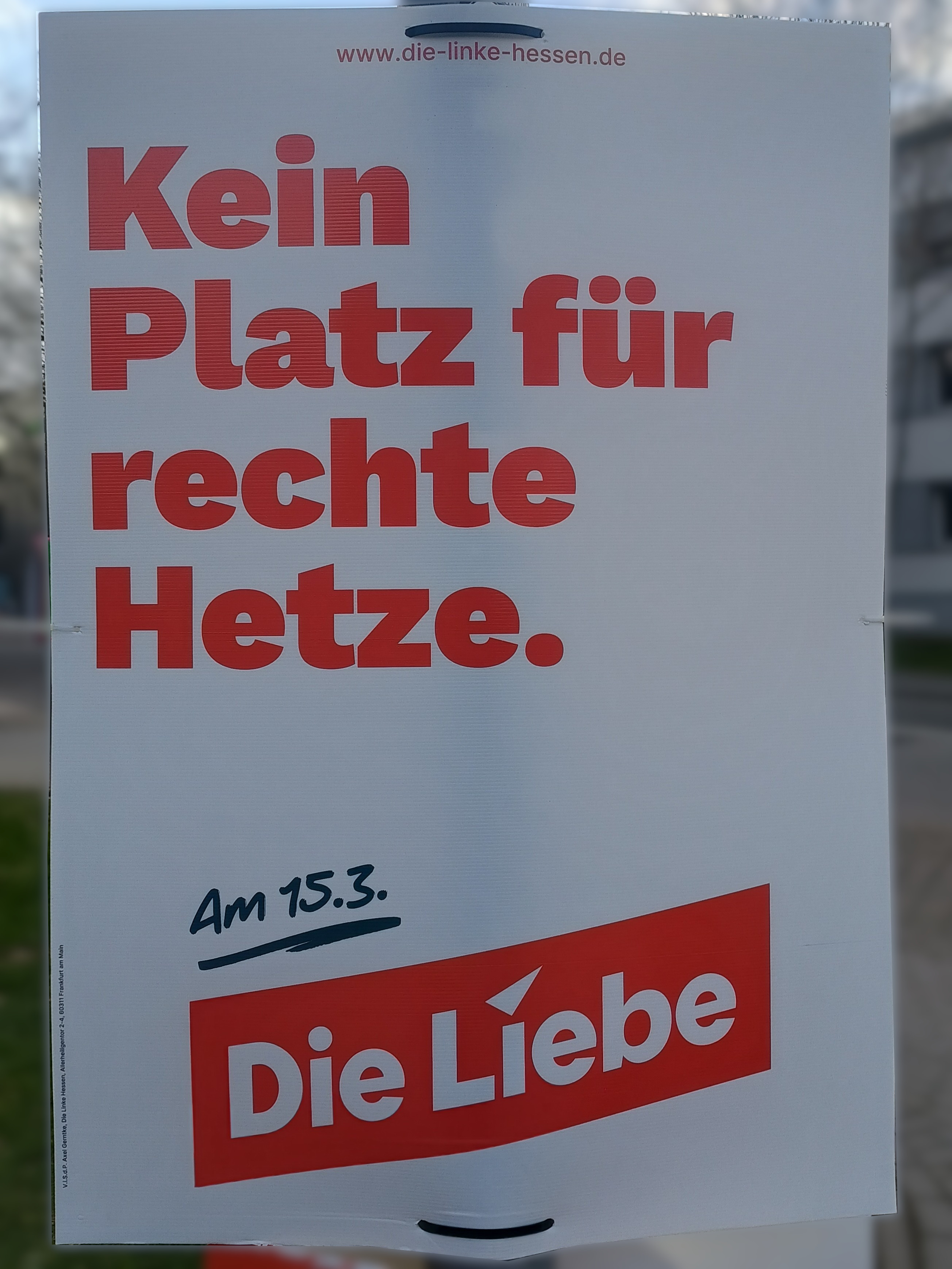 | 23:41, 12. Mär. 2026 | Wahlplakat „Kein Platz für rechte Hetze.“ (Die Linke).jpg (Datei) | 1,15 MB | COechler | Wahlplakat bei der Kommunalwahl 2026 in Gießen von der Partei Die Linke mit dem Slogen „Kein Platz für rechte Hetze”. | 1 | |