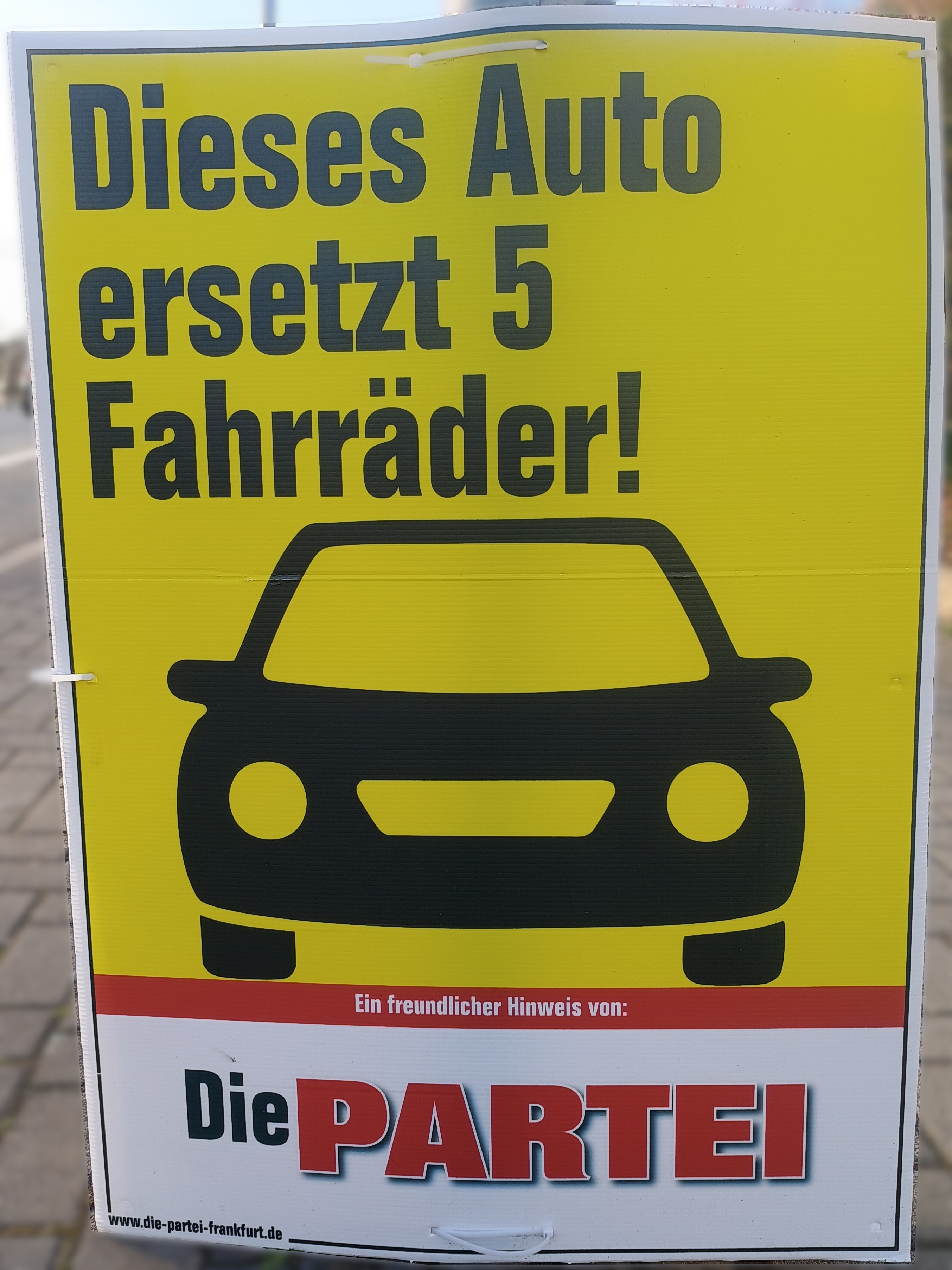 | 22:49, 12. Mär. 2026 | Wahlplakat „Dieses Auto ersetzt 5 Fahrräder“ (Die Partei).jpg (Datei) | 1,38 MB | COechler | Wahlplakat bei der Kommunalwahl 2026 in Gießen von der Partei Die Partei mit dem Slogen „Dieses Auto ersetzt 5 Fahrräder!”. | 1 | |