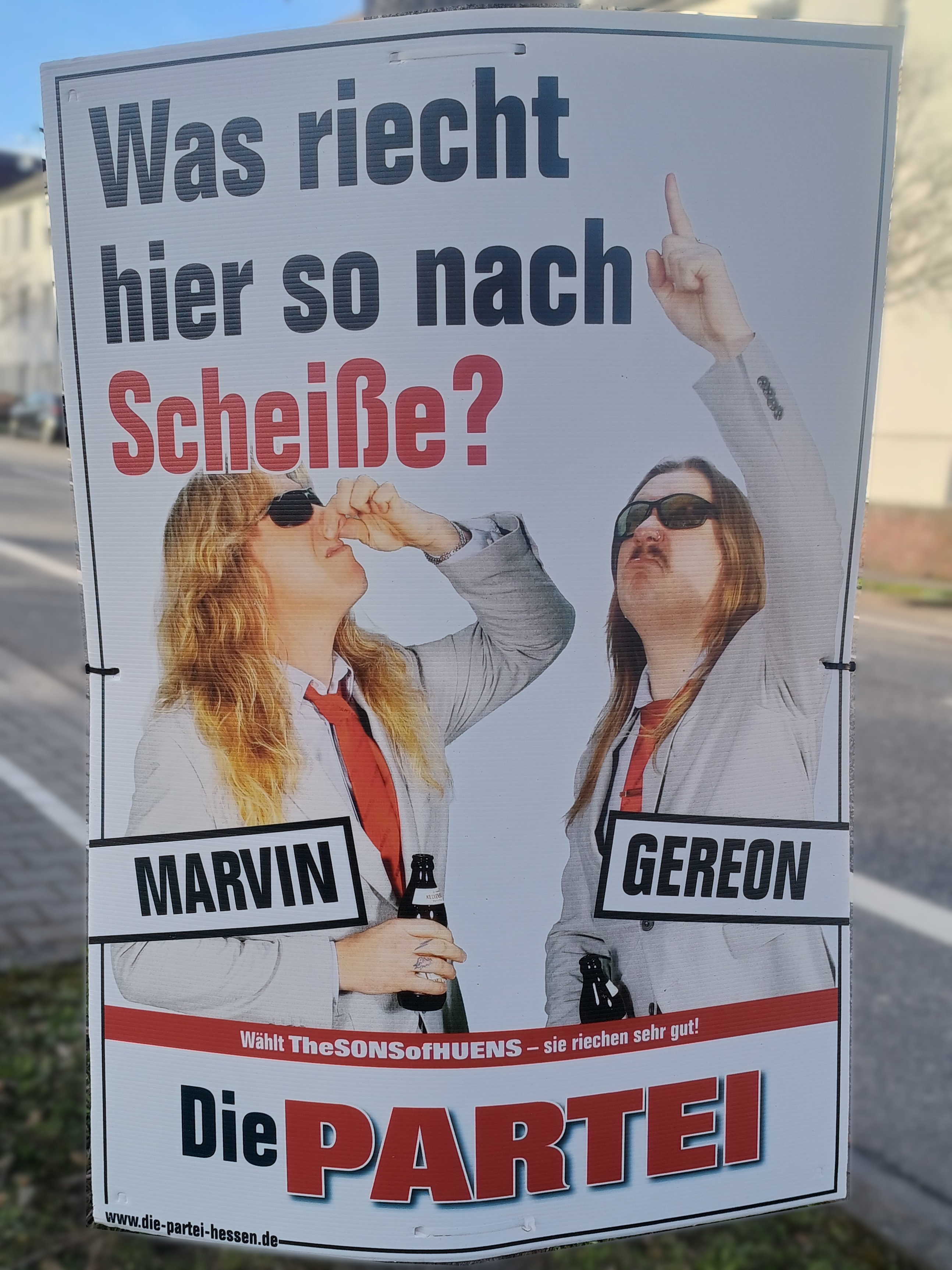 | 23:22, 12. Mär. 2026 | Wahlplakat „Was riecht hier so nach Scheiße?“ (Die Partei).jpg (Datei) | 1,47 MB | COechler | Wahlplakat bei der Kommunalwahl 2026 in Gießen von der Partei Die Partei mit dem Slogen „Was_riecht_hier_so_nach_Scheiße?“. | 1 | |