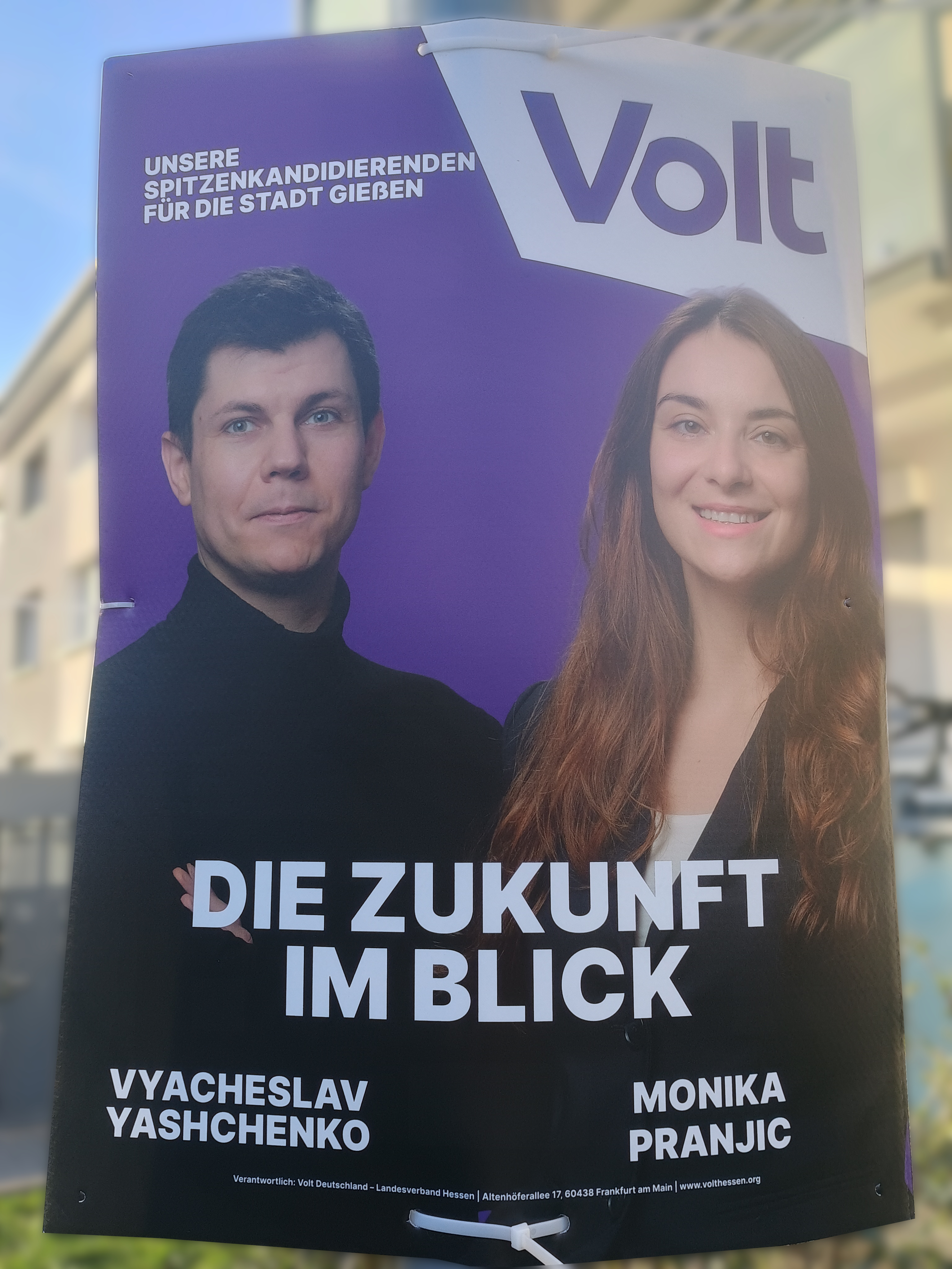 | 18:48, 13. Mär. 2026 | Wahlplakat „DIE ZUKUNFT IM BLICK“ (Volt).jpg (Datei) | 2,65 MB | COechler | Wahlplakat bei der Kommunalwahl 2026 in Gießen von der Partei Volt Deutschland mit dem Slogen „DIE ZUKUNFT IM BLICK“. | 1 | |
