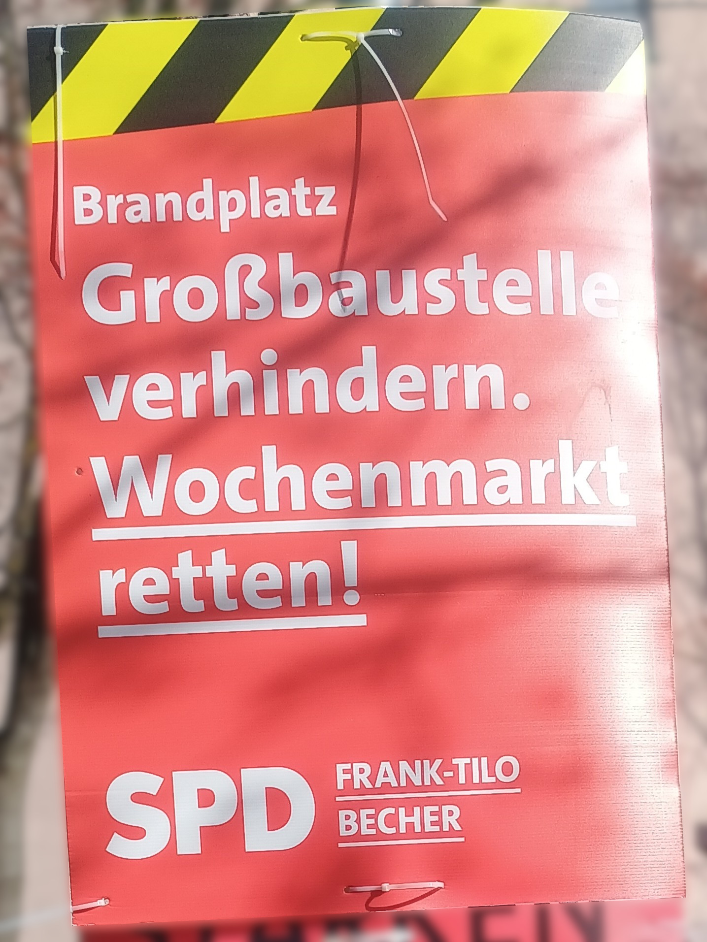| 03:22, 13. Mär. 2026 | Wahlplakat „Großbaustelle verhindern. Wochenmarkt retten!“ (SPD).jpg (Datei) | 536 KB | COechler | Wahlplakat bei der Kommunalwahl 2026 in Gießen von der Sozialdemokratische Partei Deutschlands mit dem Slogen „Großbaustelle verhindern. Wochenmarkt retten!“. | 1 | |